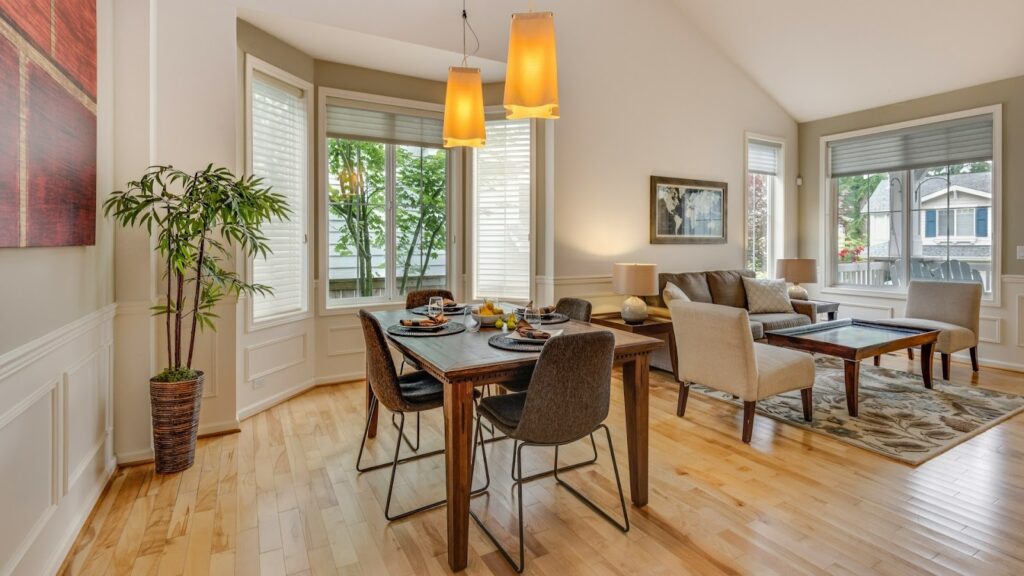 Gebruik kleur en materiaal vervolgens om zones subtiel af te bakenen. Een vloerkleed omlijst de zithoek en geeft structuur. Een lamp met warme tint brengt rust boven een tafel. Vermijd sterke contrasten in kleinere ruimtes om harmonie te behouden. Controleer daarna of kleuren logisch op elkaar aansluiten. Bekijk de ruimte vanaf de deuropening en beoordeel of de blik vloeiend beweegt. Zo ontstaat balans zonder dat de kamer strak oogt.